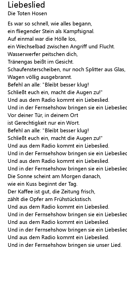 | Und aus dem Radio kommt ein Liebeslied. | |