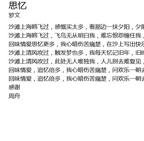 | 沙滩上清风吹过,触发梦也多,我每天忆记旧年,旧时良伴离别我。 | |