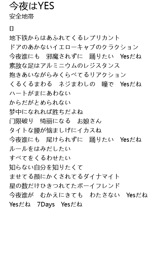 | 歌曲 | 今夜はYES |