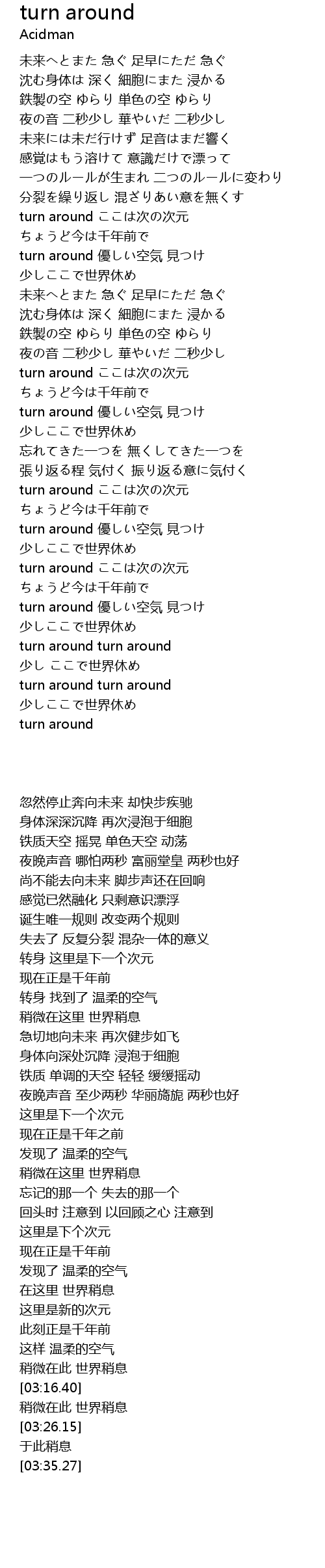 | [03:06.90] | turn around yōu kōng qì jiàn |