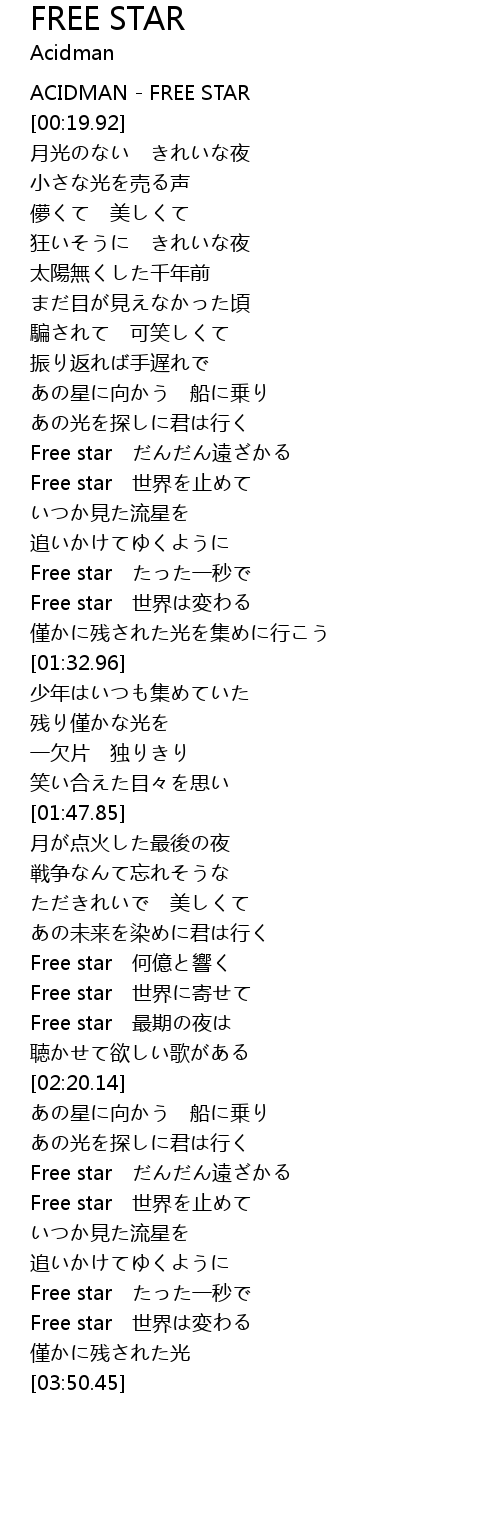 | [00:00.00] | ACIDMAN FREE STAR |