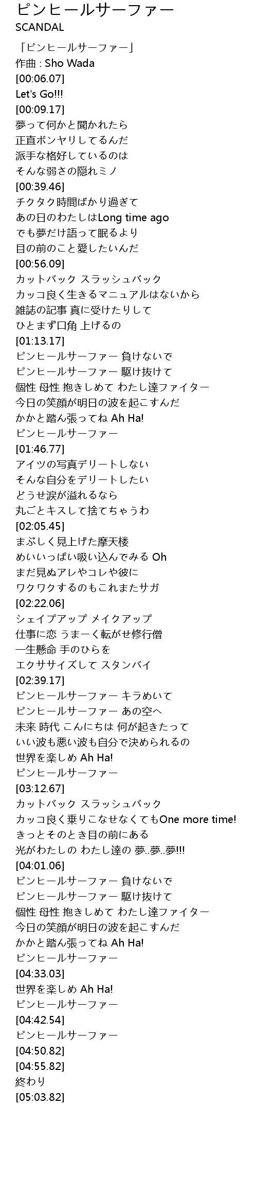 | [04:05.84] | ピンヒールサーファー 駆け抜けて |