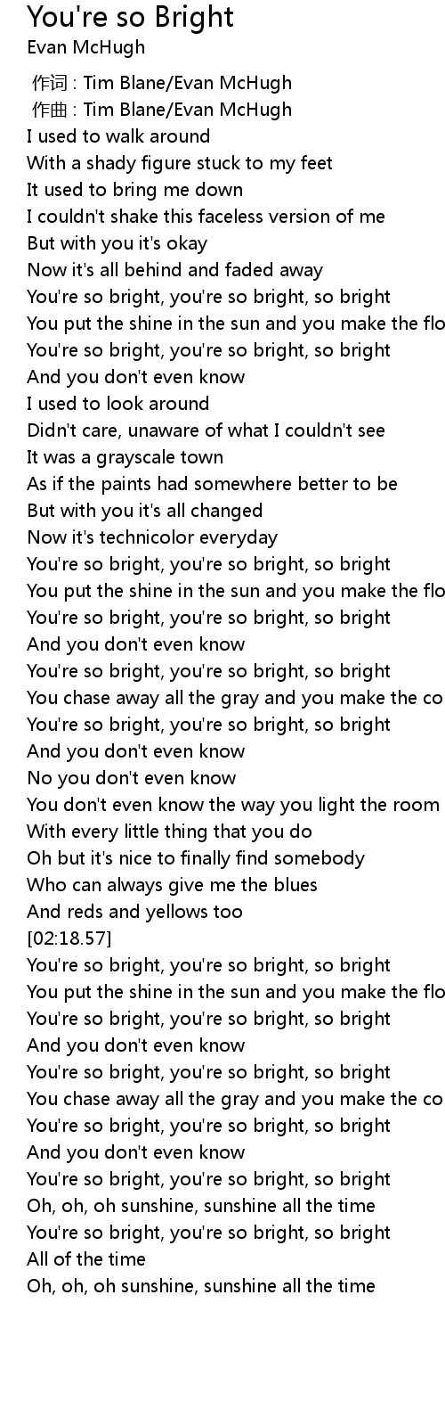 | [02:49.53] | You're so bright, you're so bright, so bright |