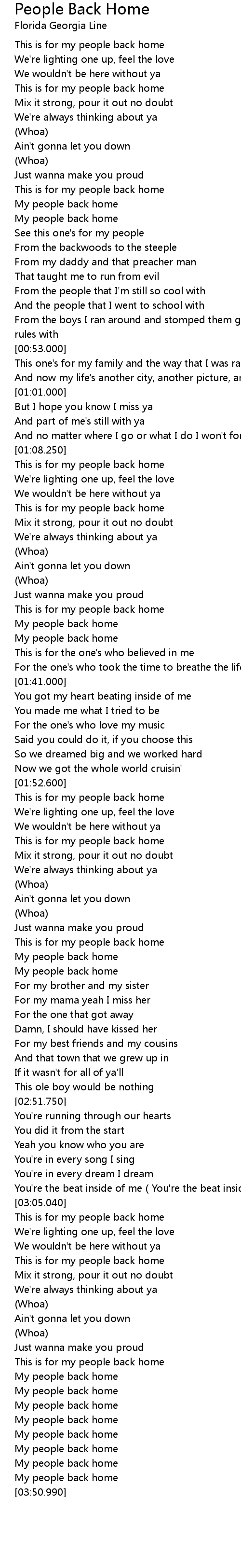 | [03:48.120] | My people back home |