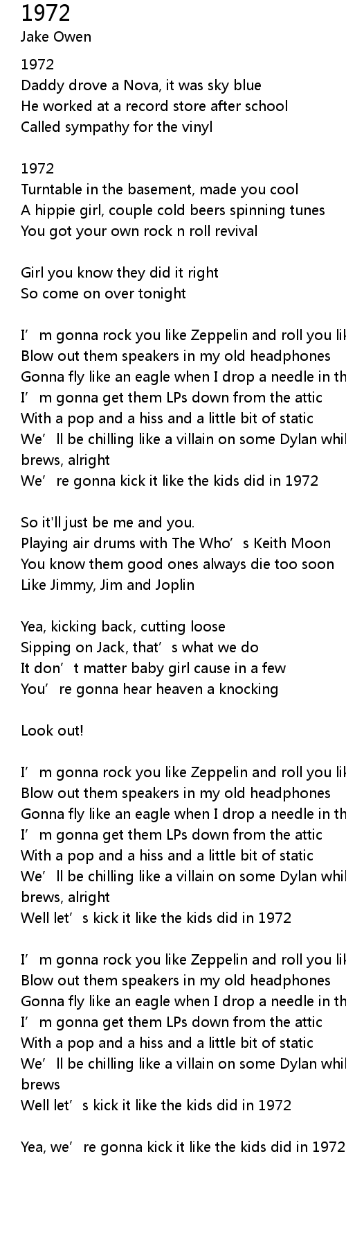 | Yea, we' re gonna kick it like the kids did in 1972 |