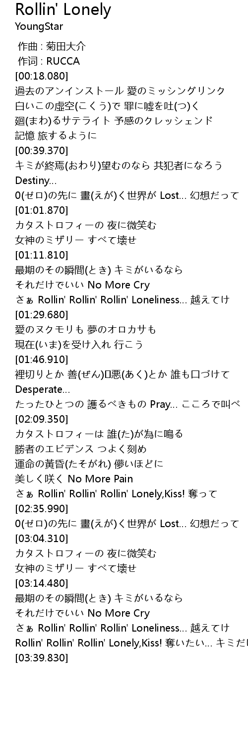 | [03:24.310] | Rollin' Rollin' Rollin' Loneliness yuè |