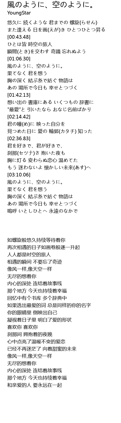 | [03:35.27] | 風のように、空のように。 |