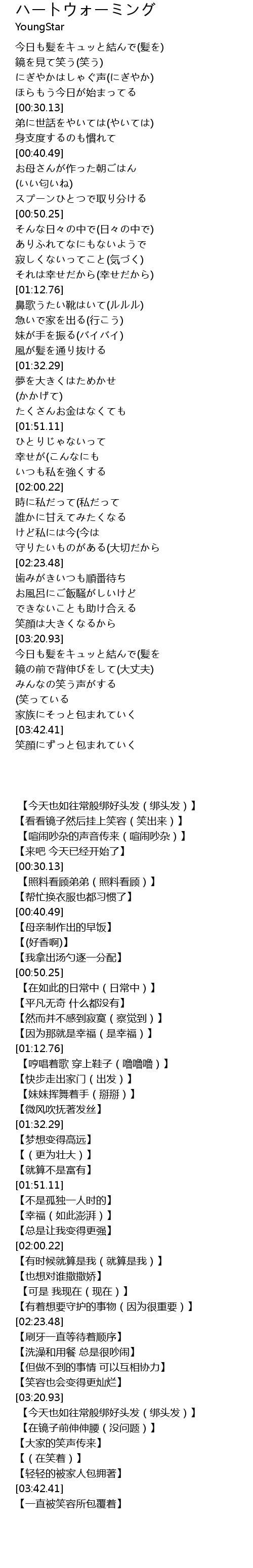 | [03:21.49] | 今日も髪をキュッと結んで(髪を |
