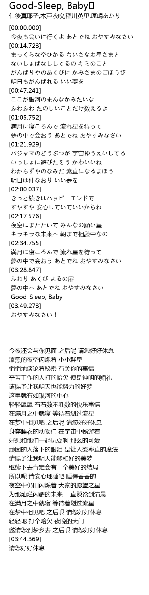 | [01:14.208] | 夢の中で会おう あとでね おやすみなさい |