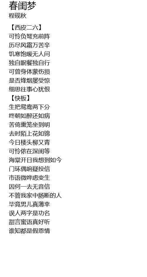 | 歌曲 | 春闺梦 |