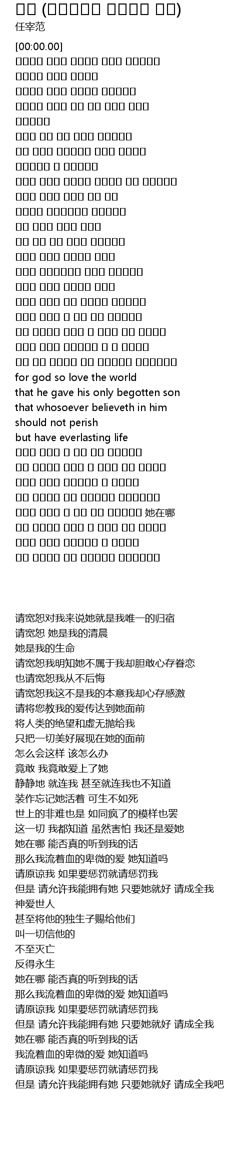 | [00:14.73] | 请宽恕对我来说她就是我唯一的归宿 |
