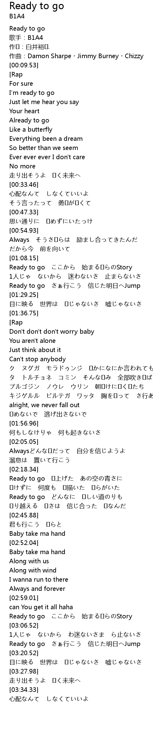| [03:14.51] | Ready to go さぁ行こう 信じた明日へJump |