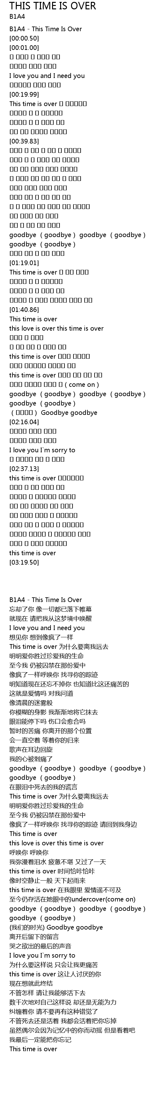 | [00:00.01] | B1A4 This Time Is Over |