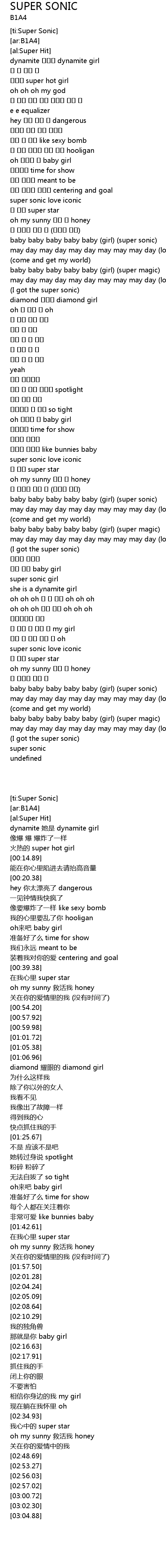 | [00:54.20] | baby baby baby baby baby (girl) (super sonic) |