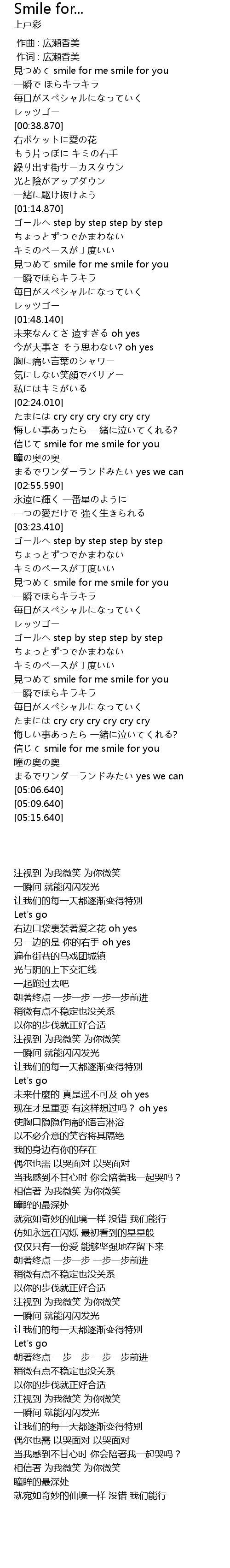 | [02:38.790] | xìn smile for me smile for you |