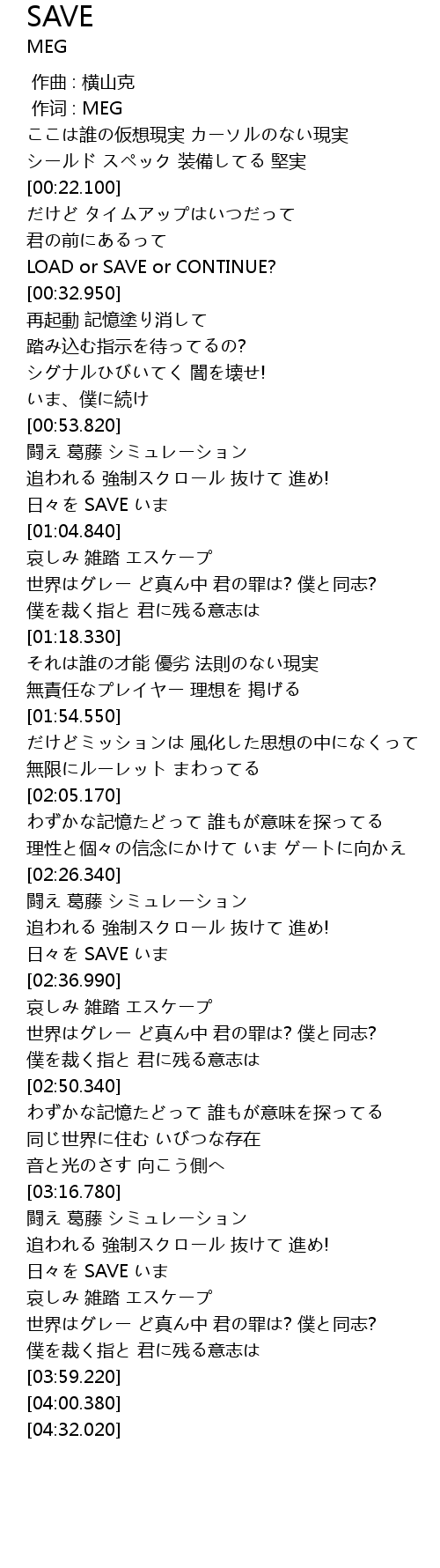 | [00:13.670] | ここは誰の仮想現実 カーソルのない現実 |
