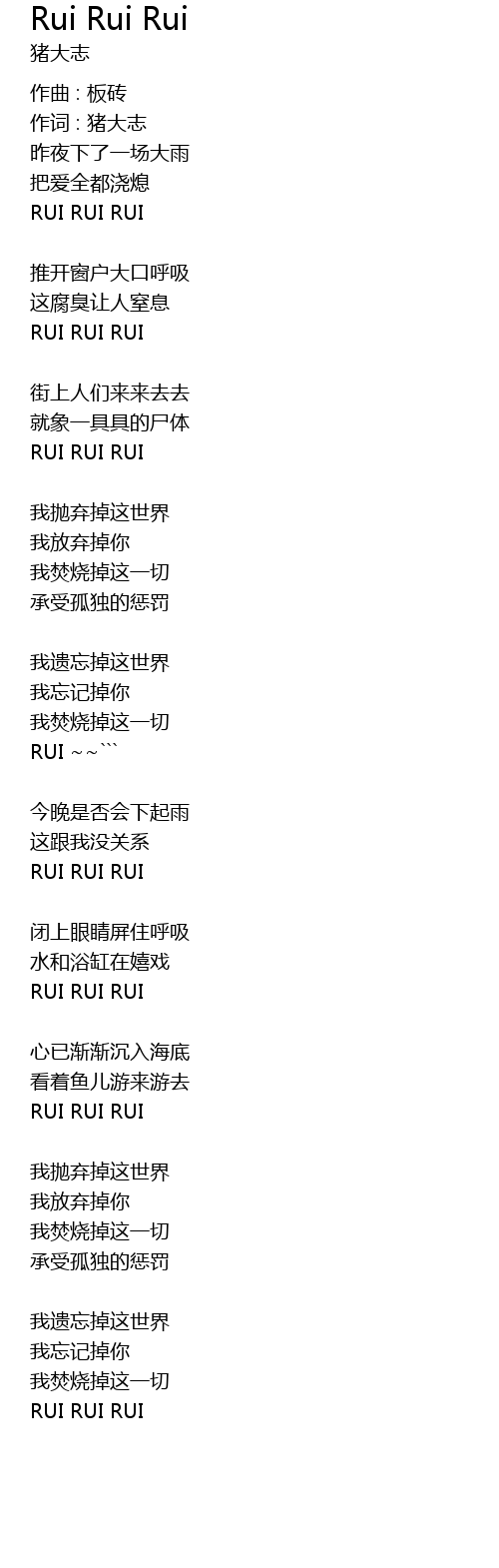 | 作词 : 猪大志 | |