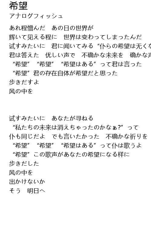 | “希望”“希望”“希望はある”って仆は歌うよ | |