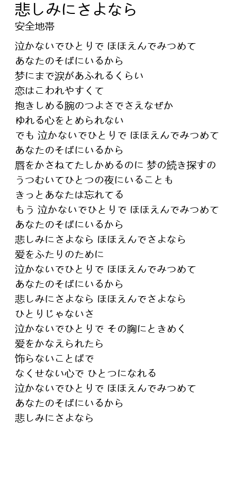 | [02:54.790] | 悲しみにさよなら ほほえんでさよなら |