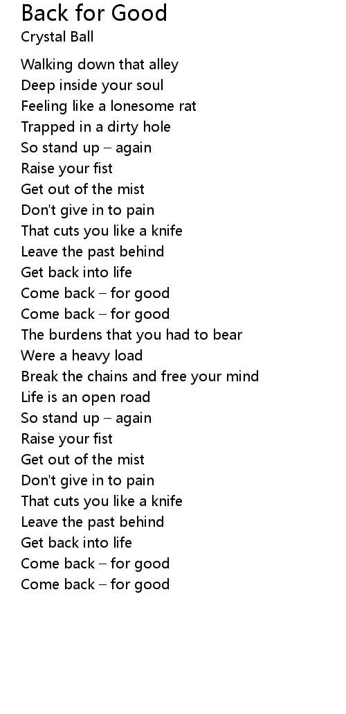 | Come back for good | |