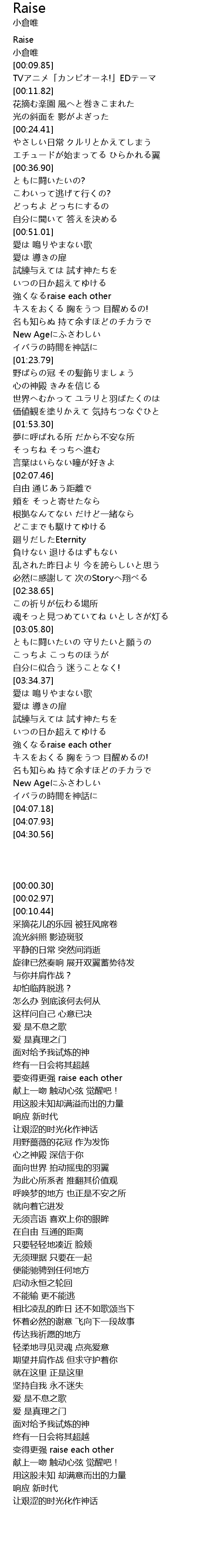 | [00:10.44] | TVアニメ「カンピオーネ!」EDテーマ |