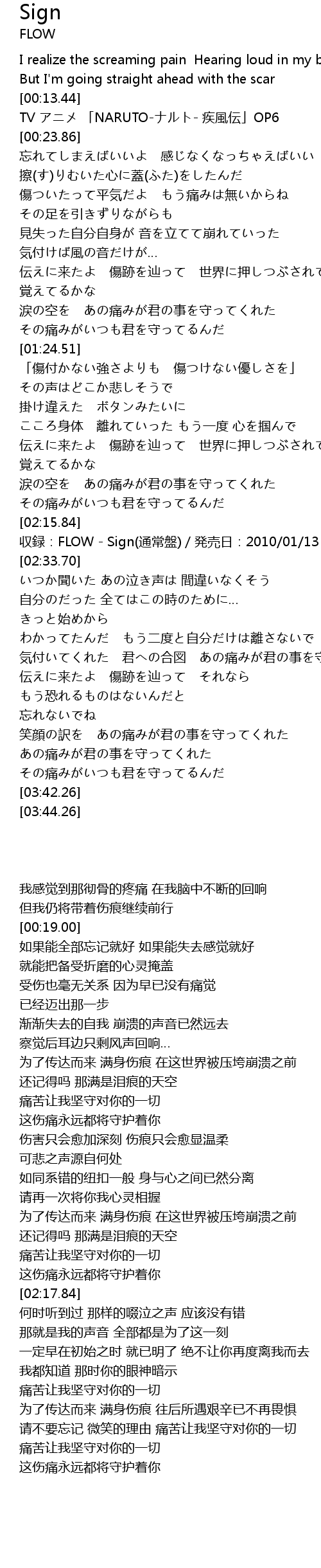 | [02:17.84] | 収録:FLOW - Sign(通常盤)/発売日:2010/01/13 |