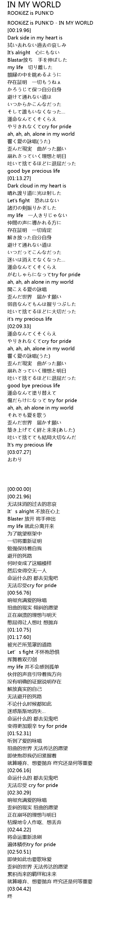 | [00:00.00] | ROOKiEZ is PUNK' D IN MY WORLD |