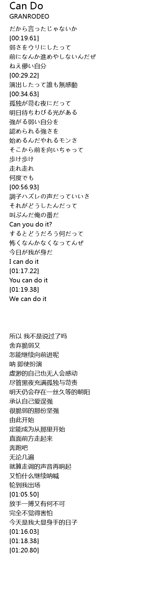 | [01:20.80] | We can do it |