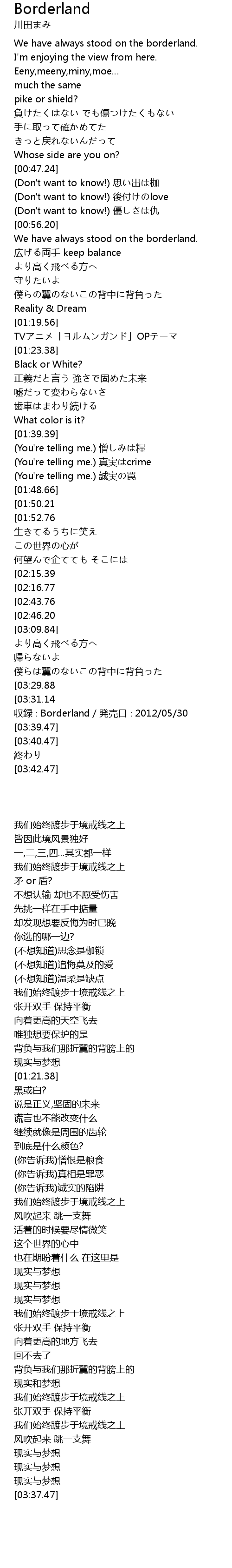 | [03:37.47] | shōu lù Borderland fā mài rì 2012 05 30 |