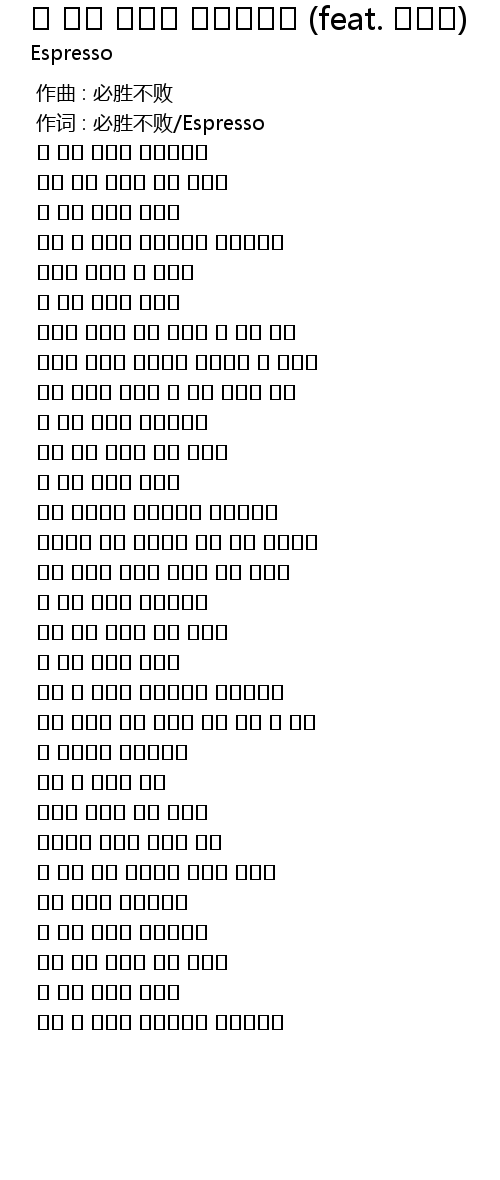 | [00:01.00] | zuò cí : bì shèng bù bài Espresso |
