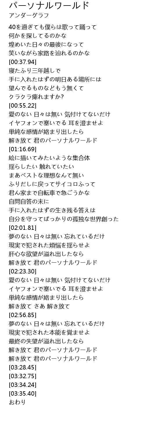 | [02:15.87] | 解き放て 君のパーソナルワールド |