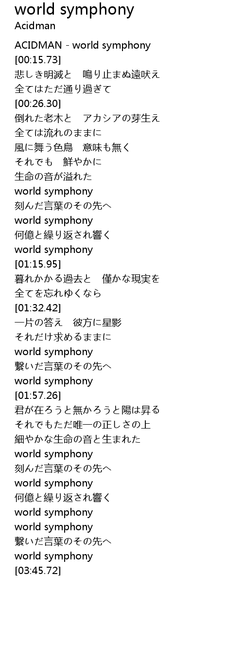 | [00:00.00] | ACIDMAN - world symphony |