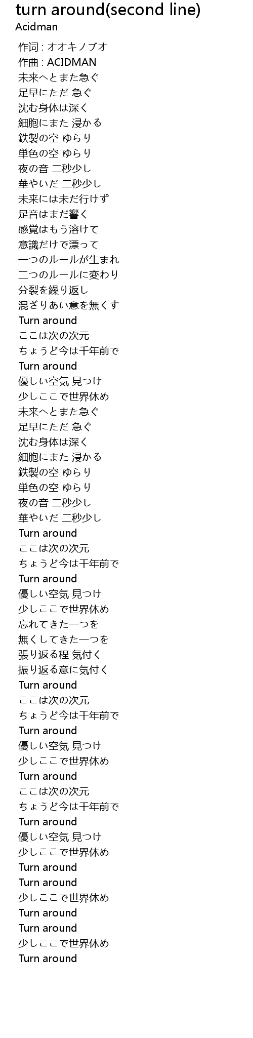 turn around(second line) 歌词
