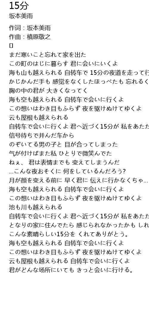 | 自转车で会いに行くよ 君へ近づく15分が 私をあたためてく | |