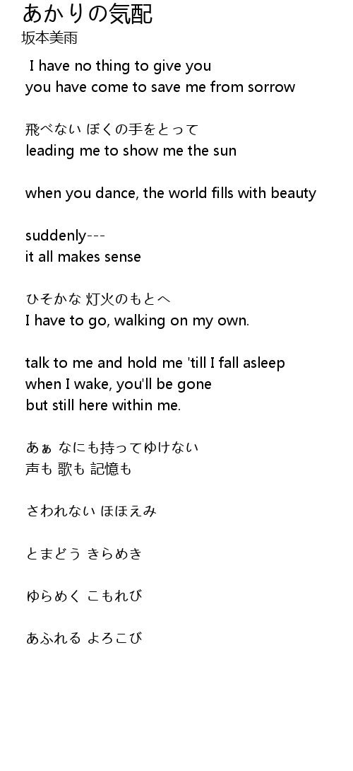 | 歌曲 | あかりの気配 |