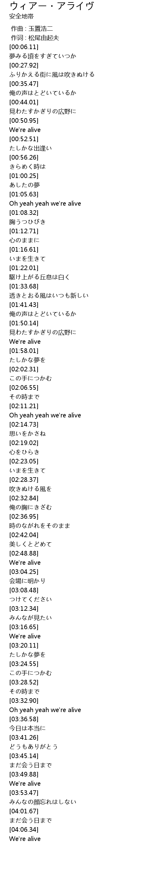 | [02:12.18] | Oh yeah yeah we' re alive |