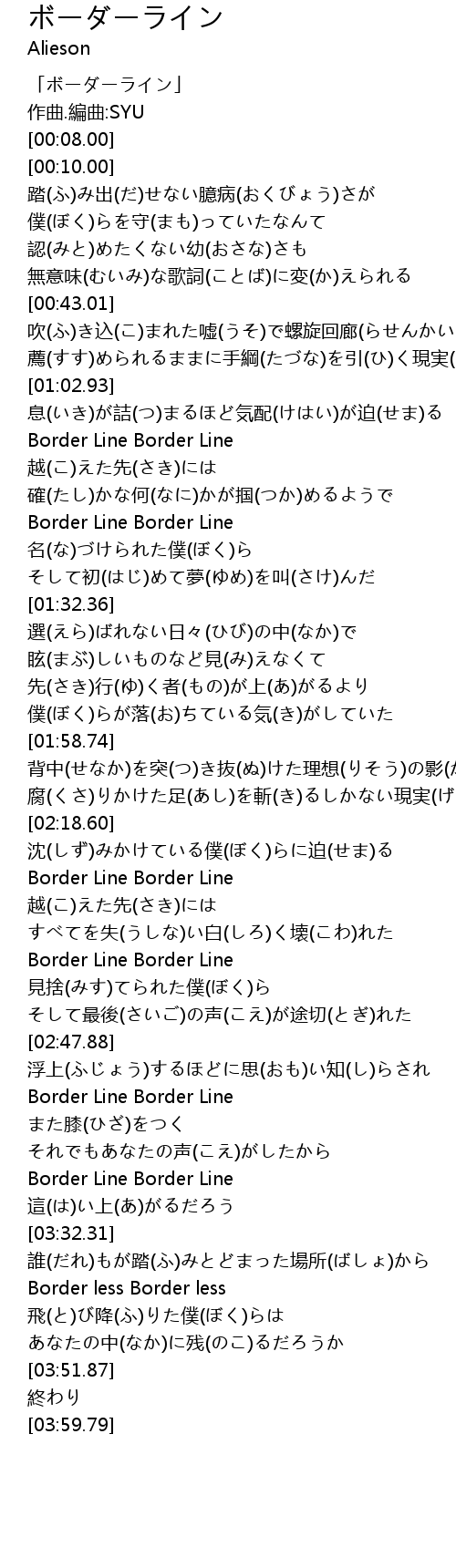 | [01:17.50] | Border Line Border Line |