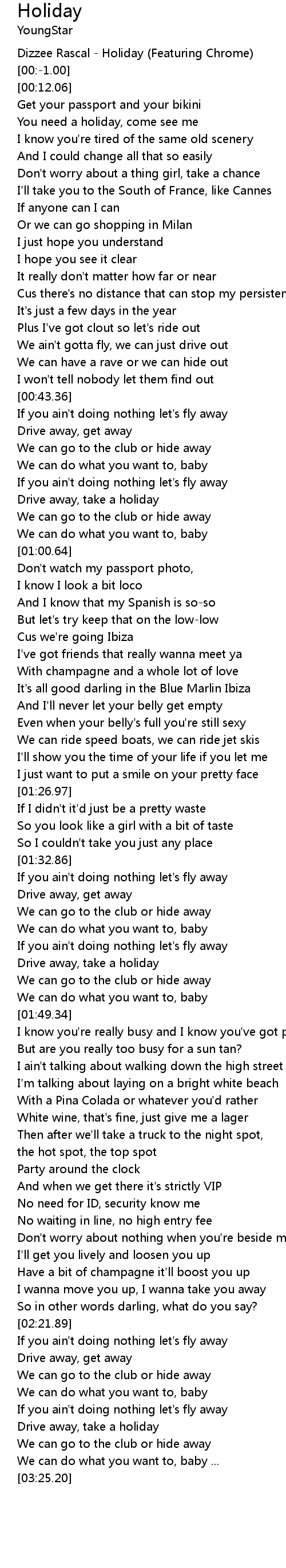 [00:-2.00] Dizzee Rascal - Holiday (Featuring Chrome)