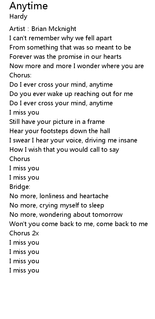 | Do I ever cross your mind, anytime | |