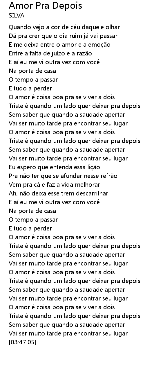 | [03:30.04] | Triste é quando um lado quer deixar pra depois |
