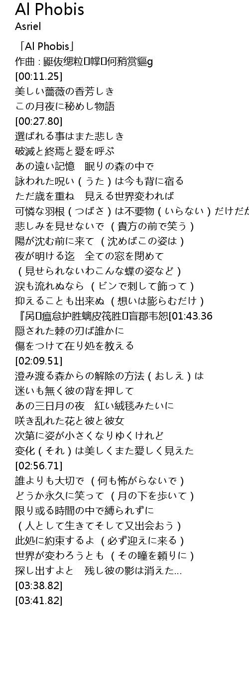 | [00:03.25] | 「Al Phobis」 |