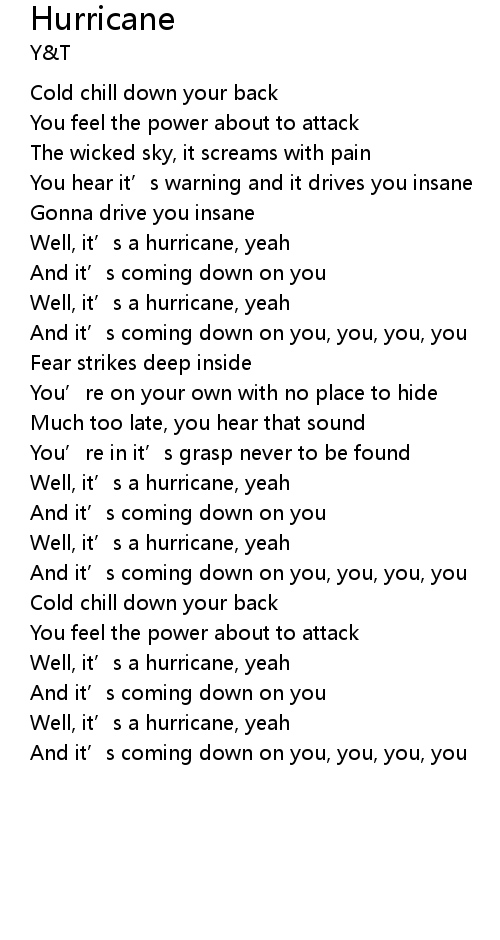 | Well, it' s a hurricane, yeah | |