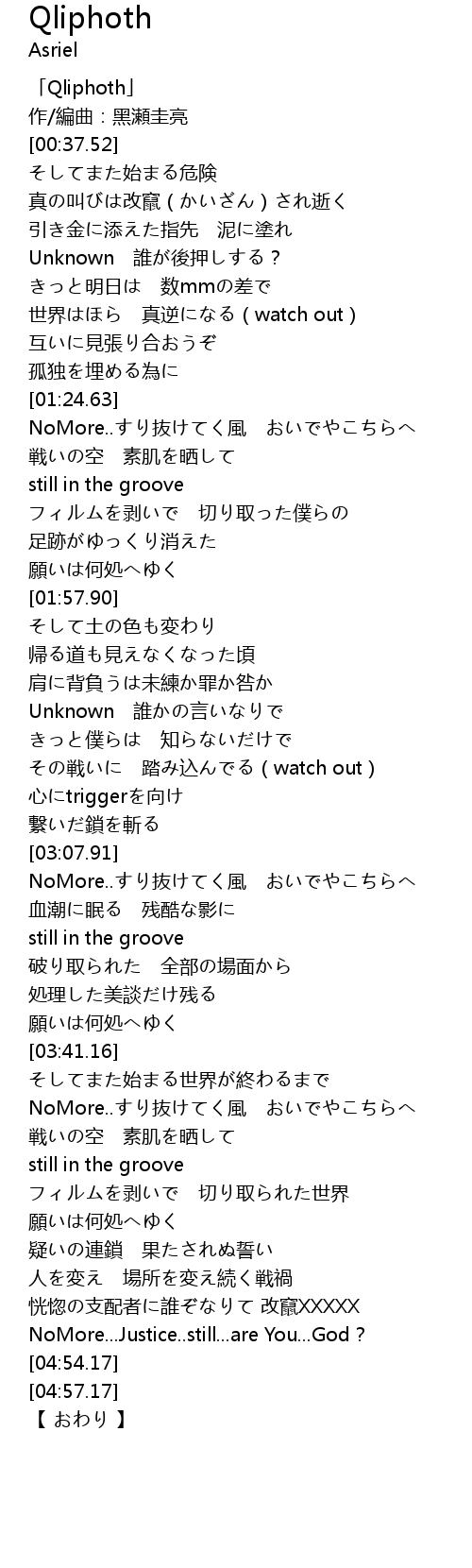| [00:01.52] | 「Qliphoth」 |