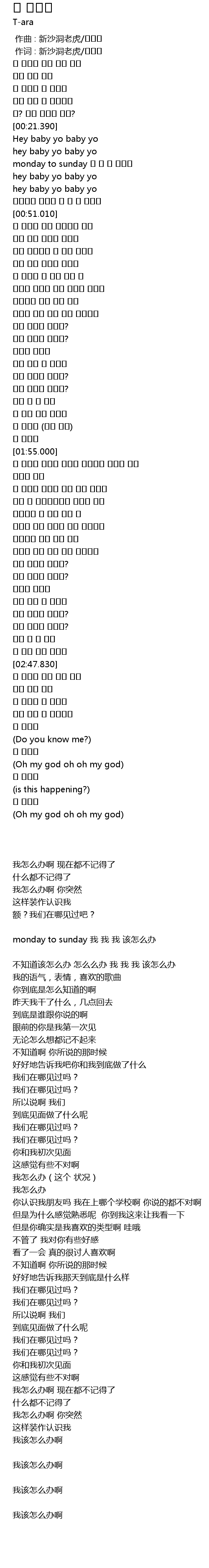 | [00:39.330] | monday to sunday 我 我 我 该怎么办 |