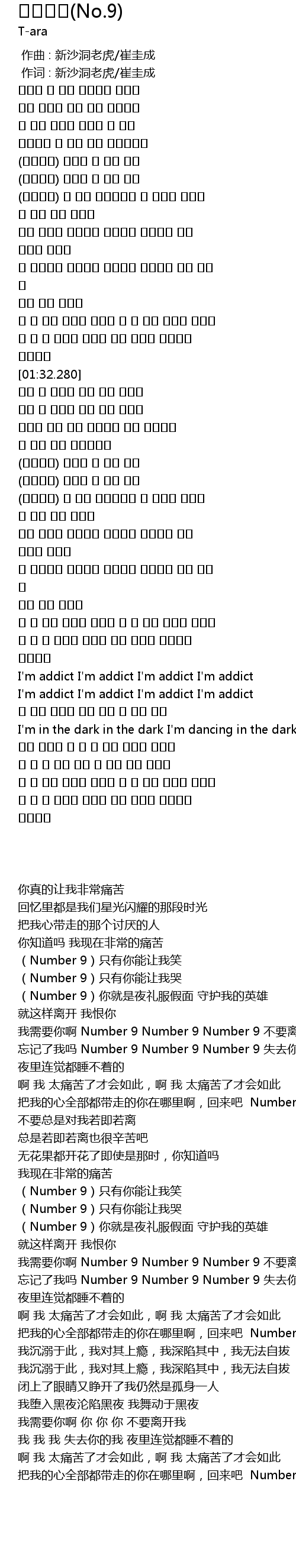 | [02:15.010] | 네가 필요해 넘버나인 넘버나인 넘버나인 나를 떠나지 말아요 |