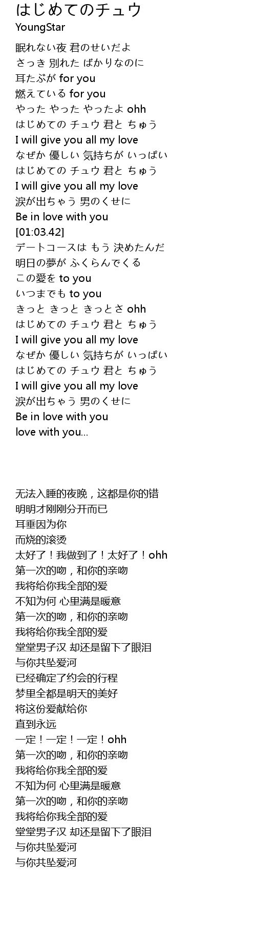 | [01:37.05] | はじめての チュウ 君と ちゅう |