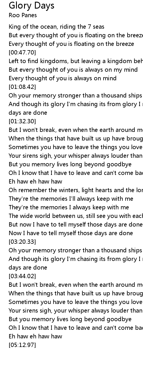 And though its glory I'm chasing its from glory I run, those glory days are done |