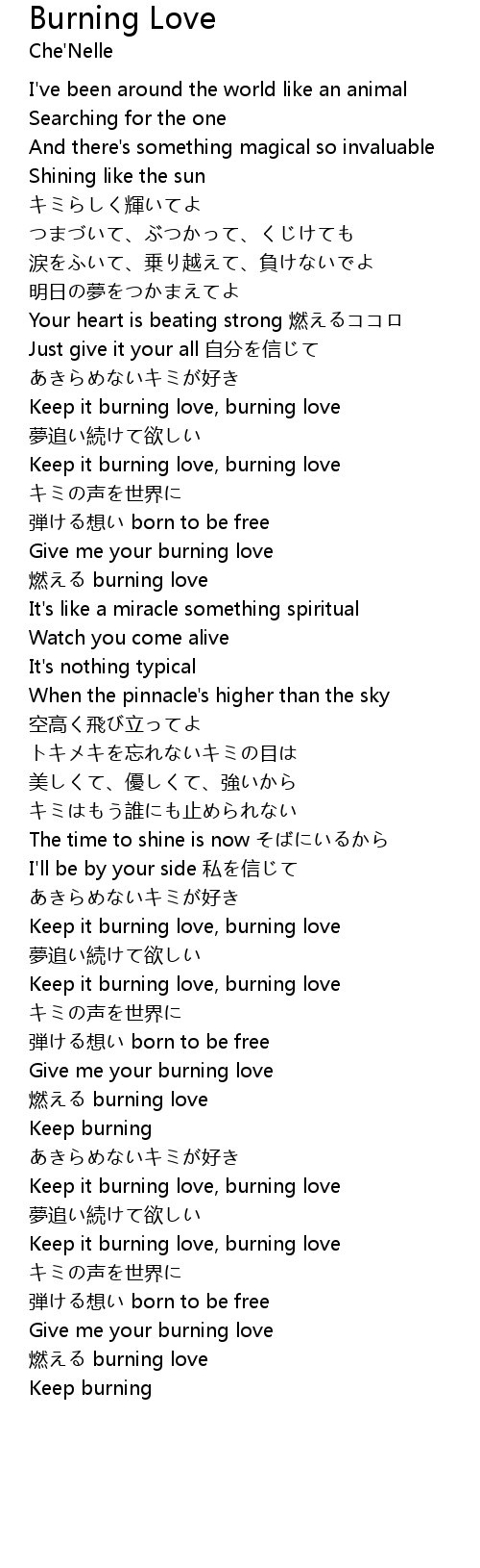| Keep it burning love, burning love | |