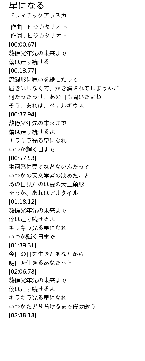 | [02:19.20] | キラキラ光る星になれ |
