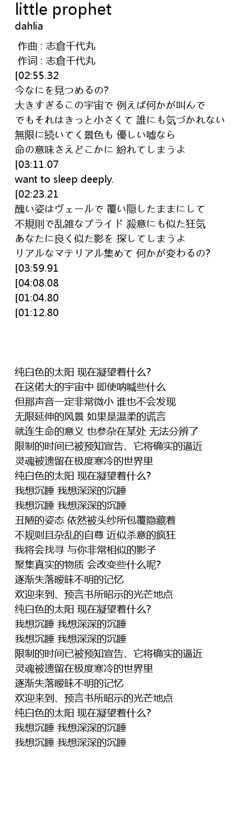 | 歌曲 | little prophet |